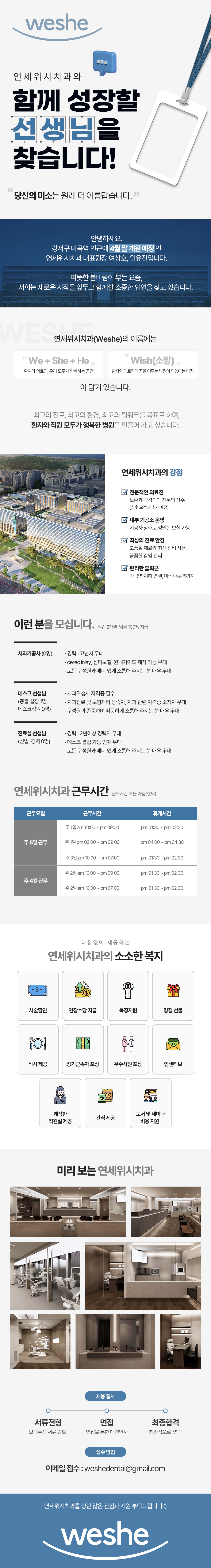 [신규개원] 연세위시치과에서 실력 있고, 매너 좋으신 기공실 멤버 충원합니다.