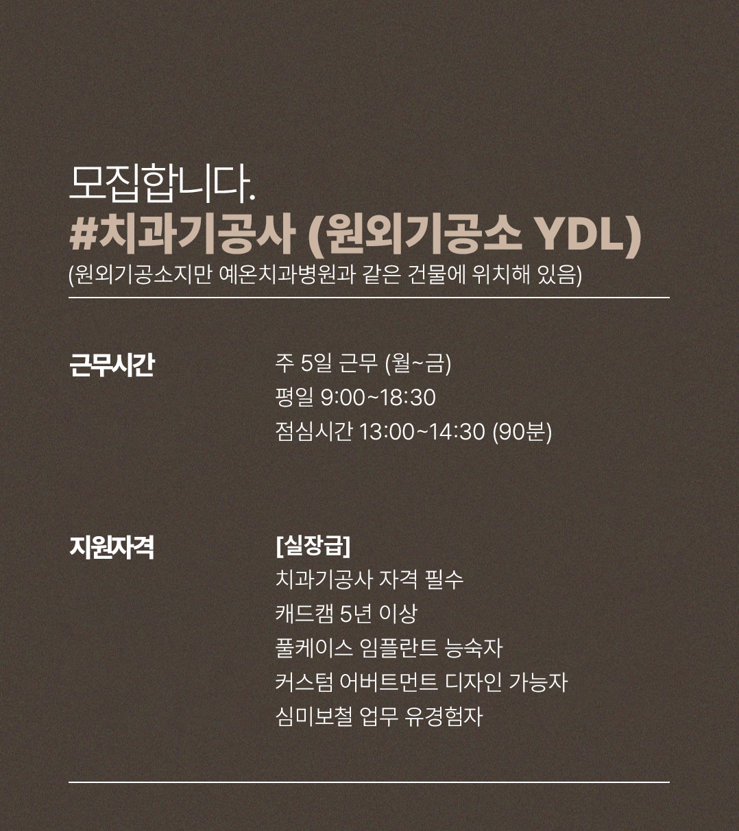 예온치과병원 검단365점 윈외기공소 실장급 기공사 채용
