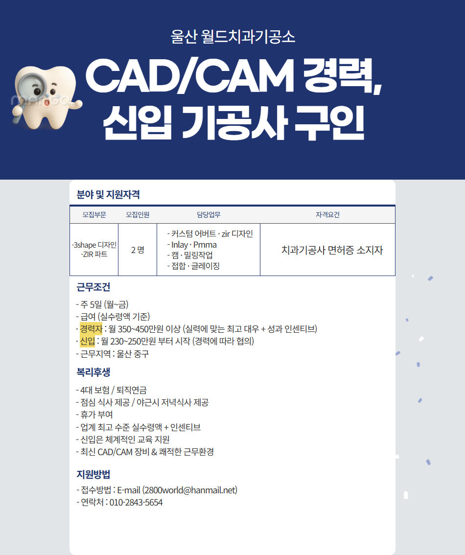 [울산] CAD/CAM 경력직 구인합니다