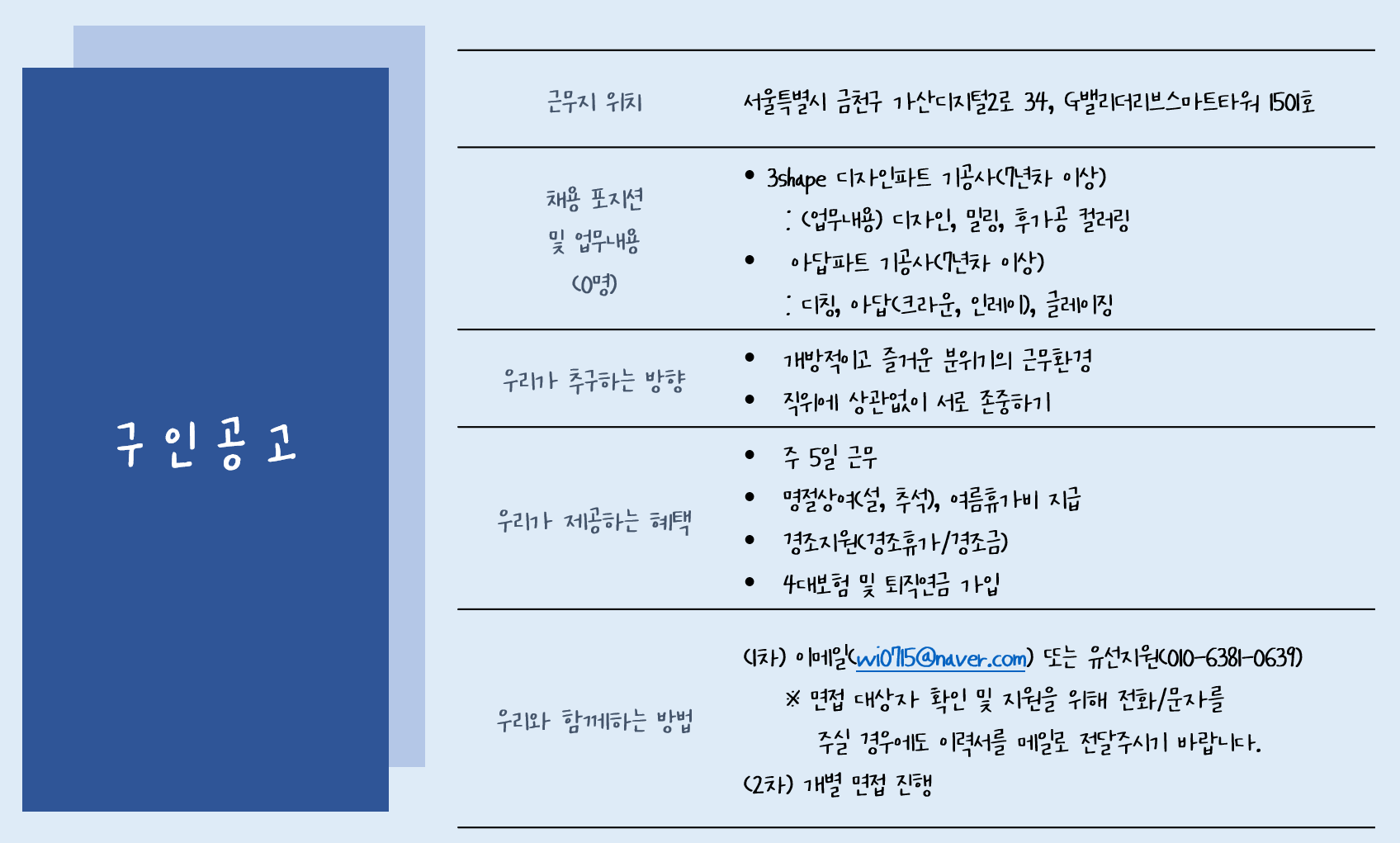(면접관련해서는 메일로 이력서 전달해주시면 순차적으로 연락드리겠습니다)