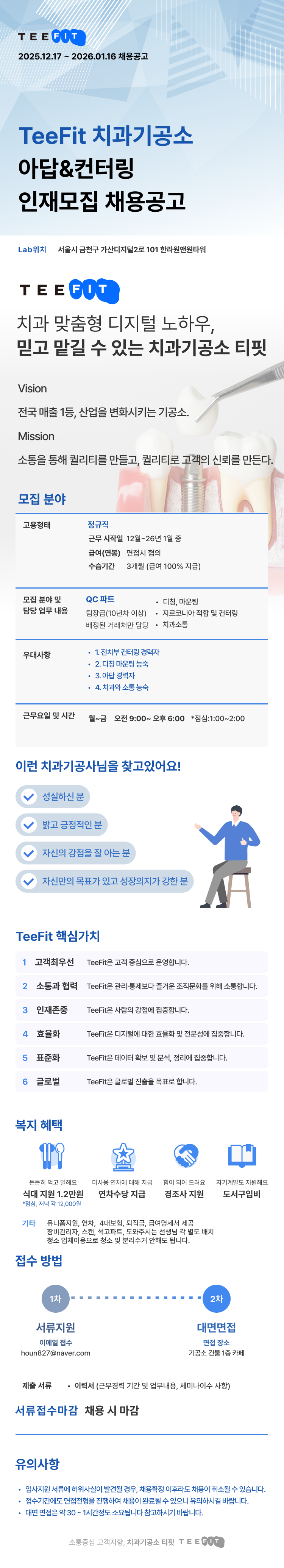 기공소 비전&미션에 맞춰 함께 성장 하실 기사님을 찾고 있습니다